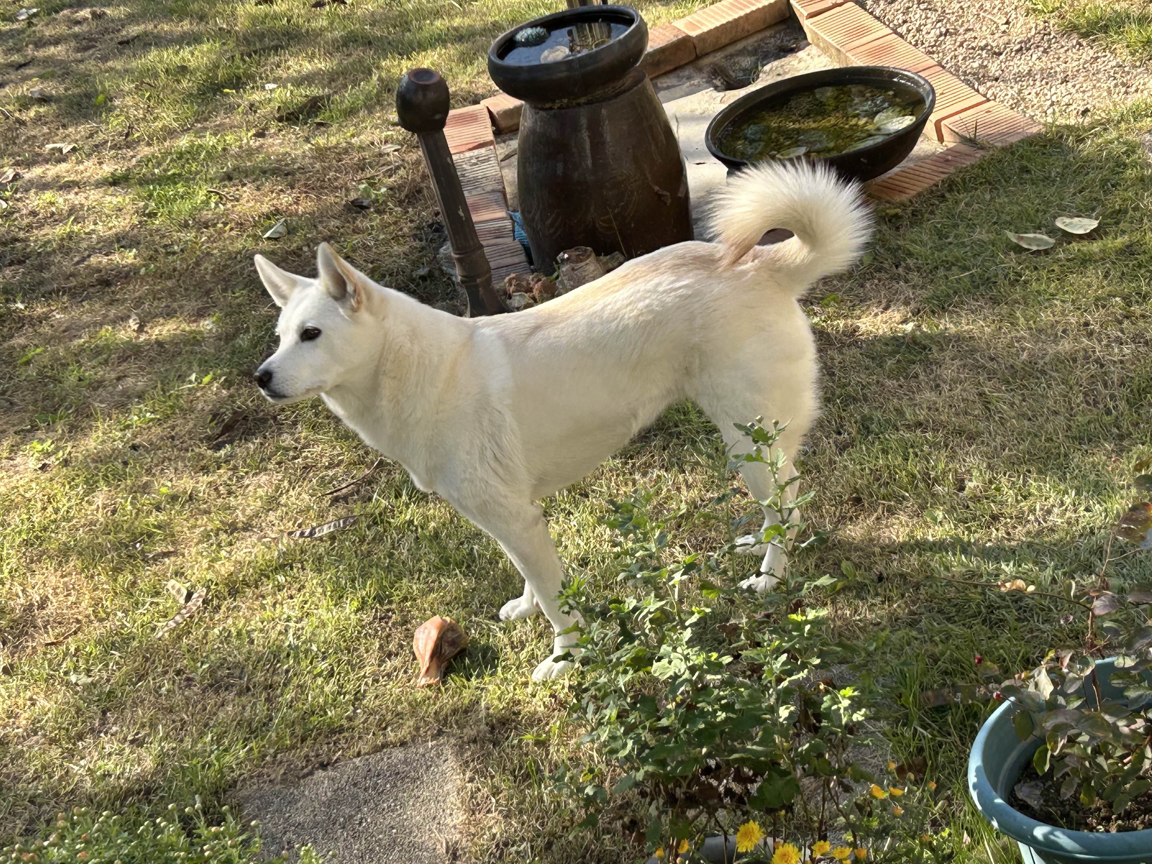 하나 줬더니 고사를 지내나… 물어다놓고 가만 서 있네?!