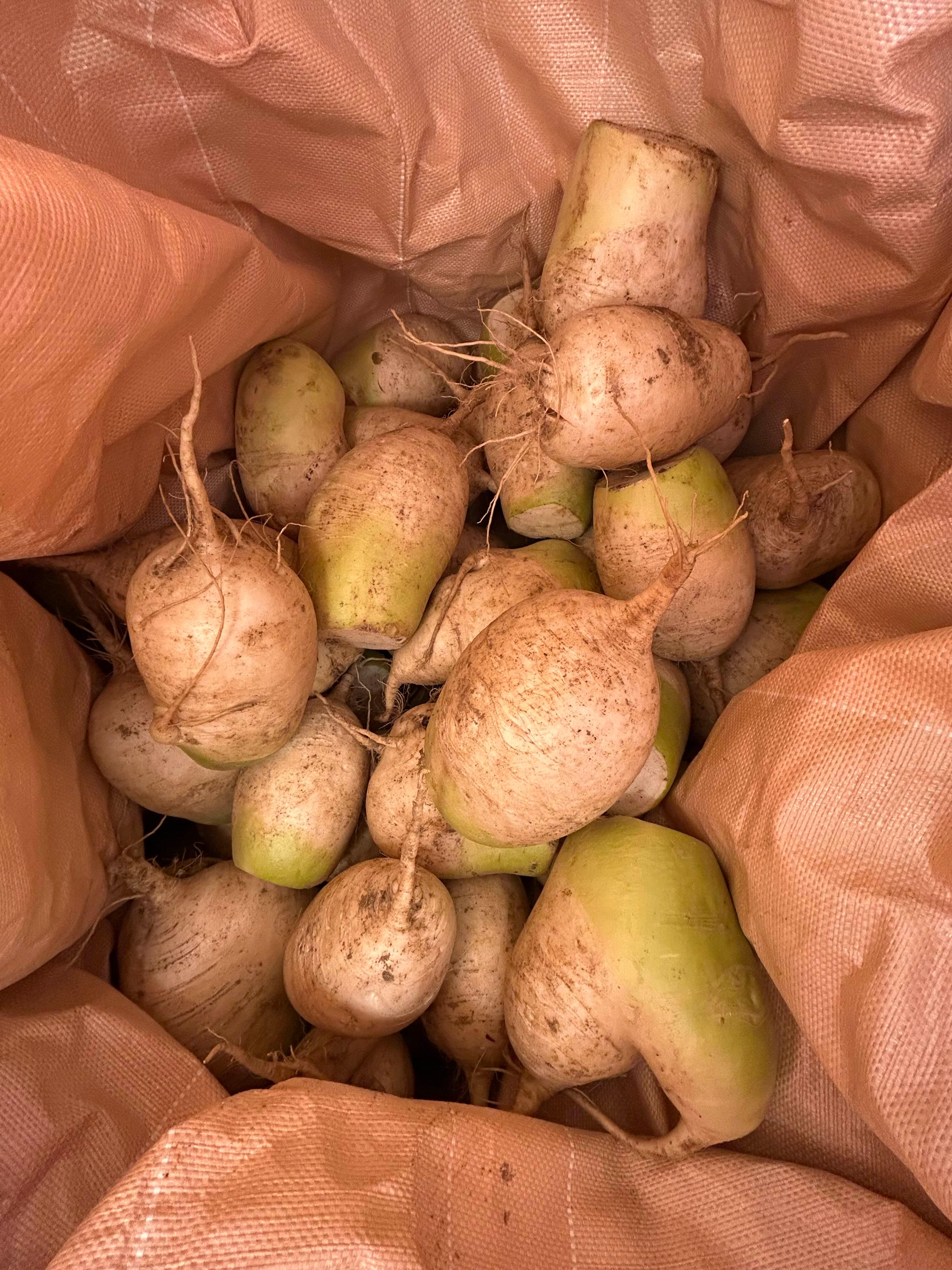 무청은 실한데 정작 땅 속의 무는 형편없었다. 거의 썩었고 자잘했다. 그래도 이게 어디냐 아무 불평불만 않고 묵묵히 무를 담아 저장해놨다. 큰 고래통에 비닐을 깔고 나락담는 헌 톤백에 차곡차곡 넣어 보온덮개로 덮어놨다.