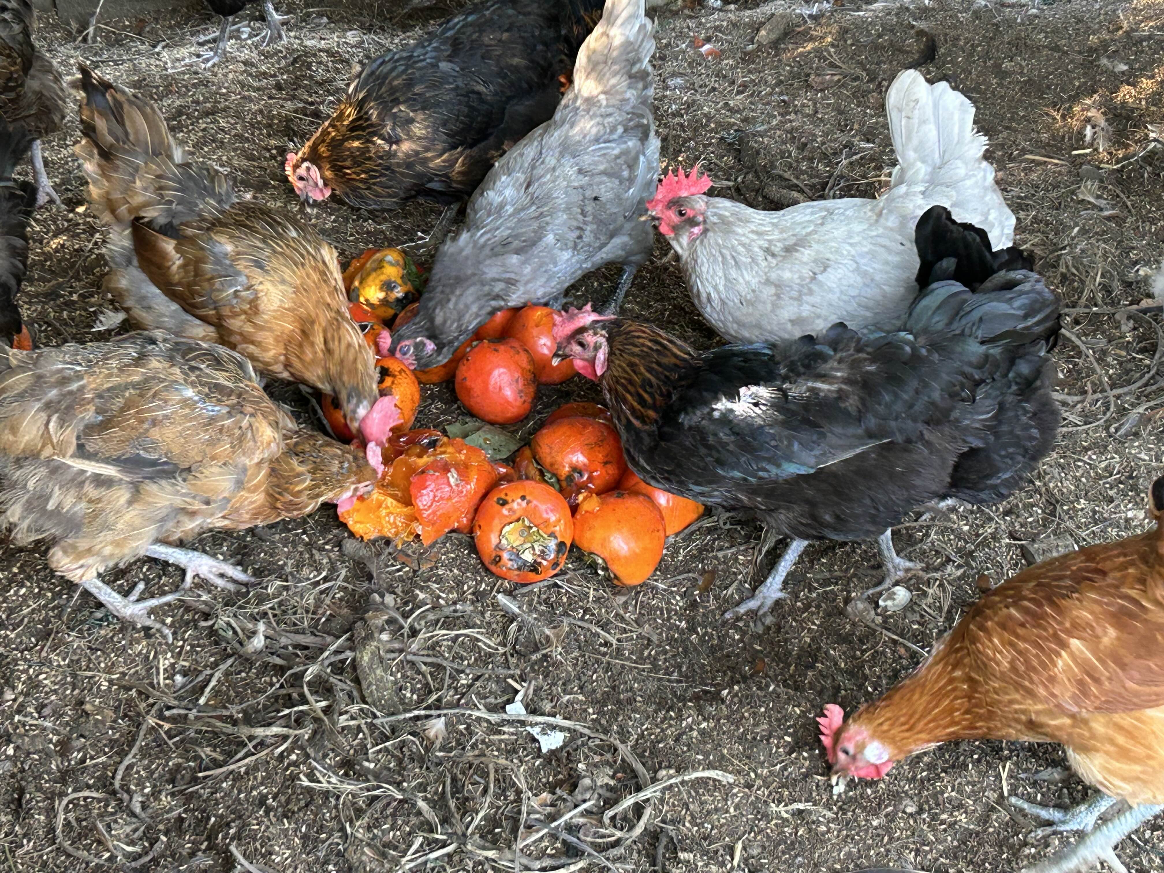 홍시가 된 감은 아무도 먹으려들지 않아서 모조리 닭들한테 주고… 닭들만 신났다.