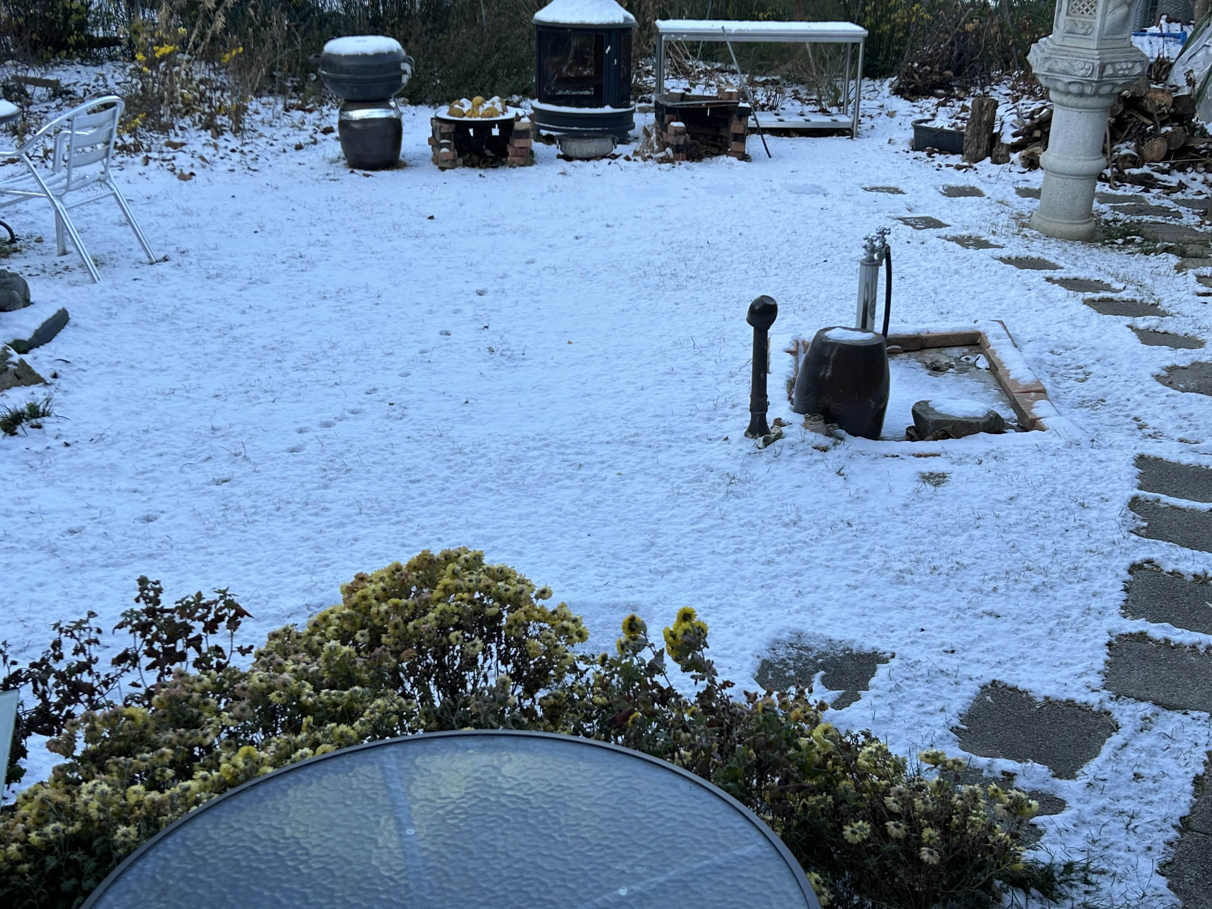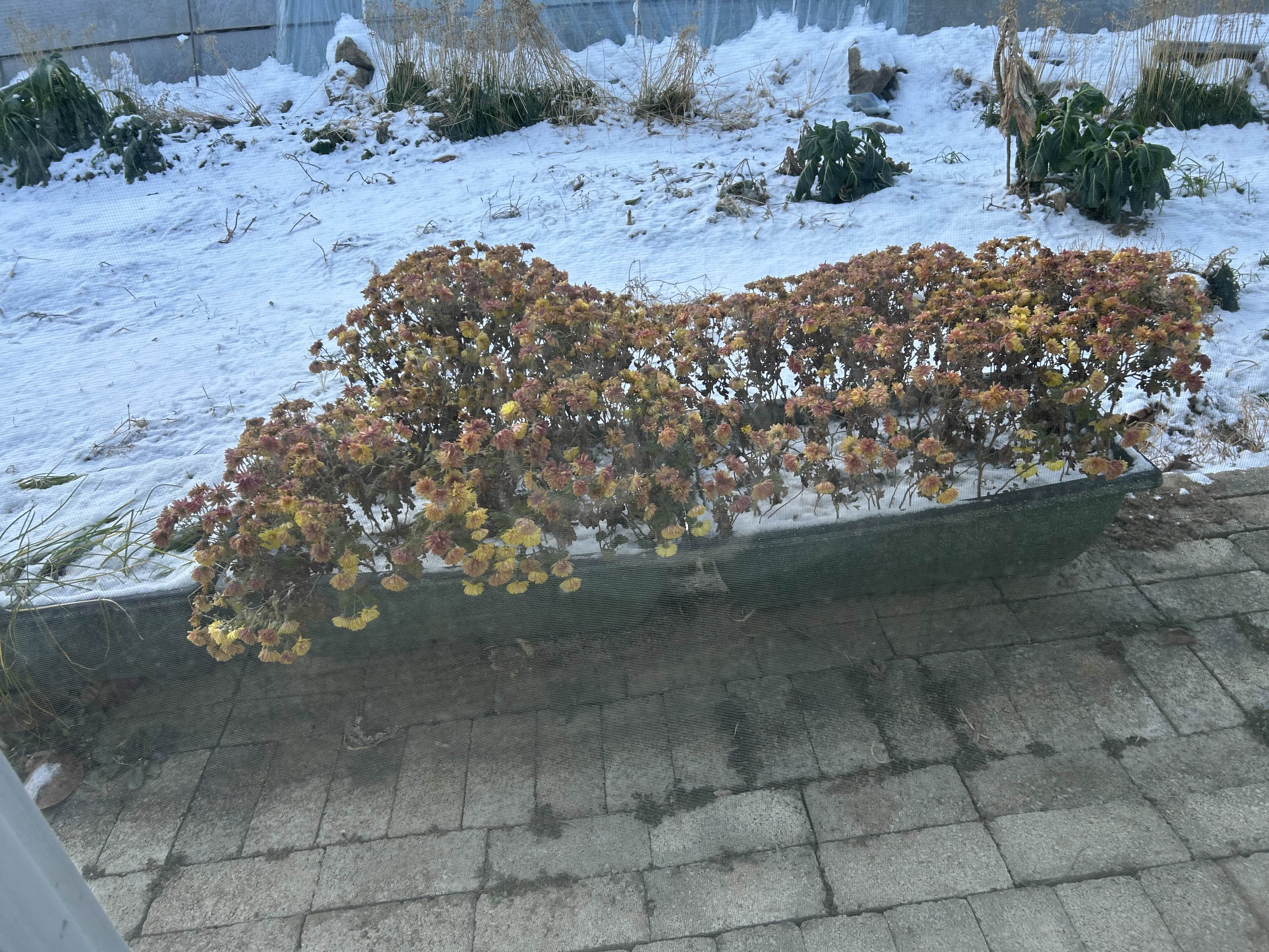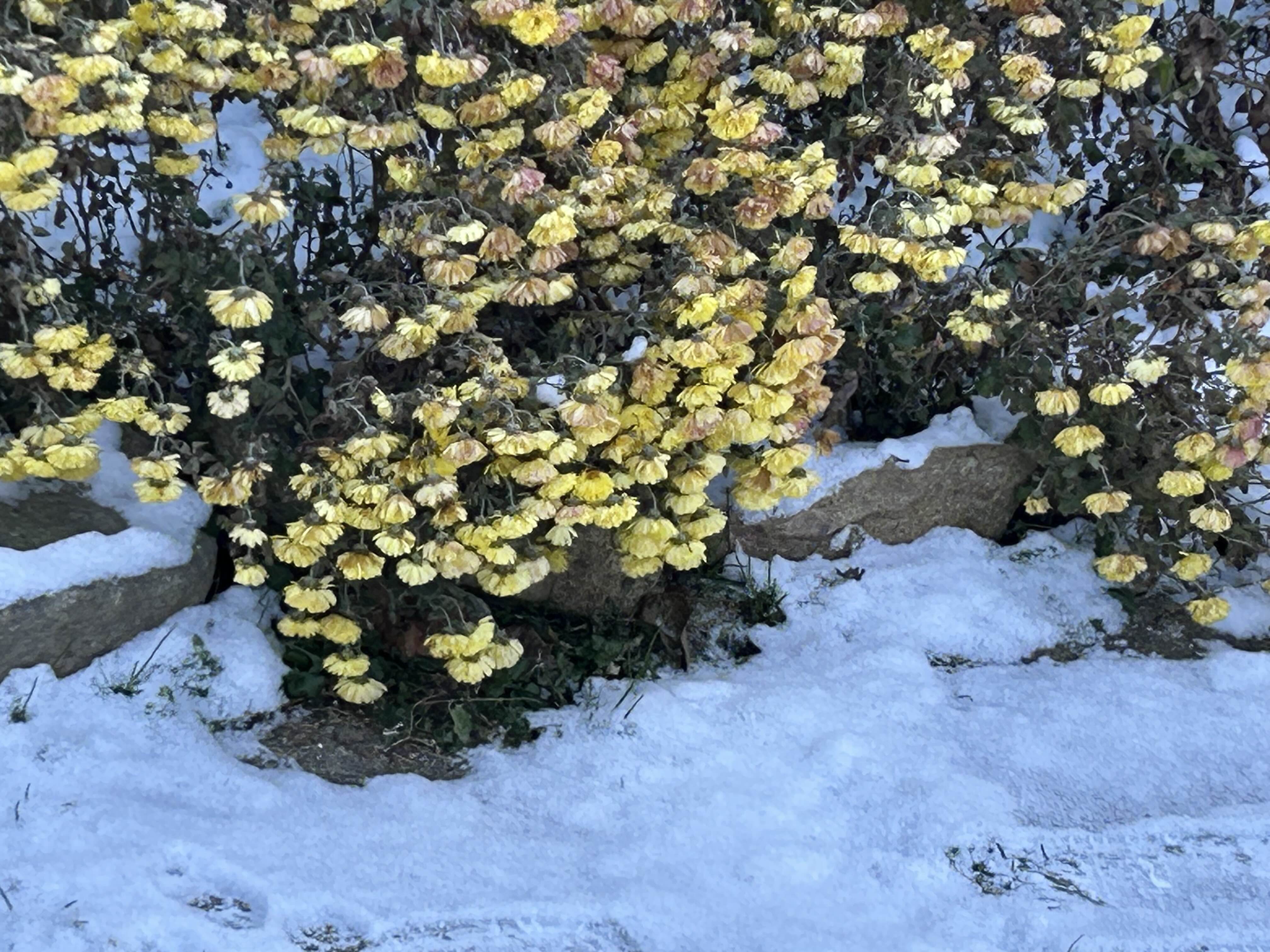 국화가 참 춥겠다… 노랑이 두드러지게 눈에 띄네…