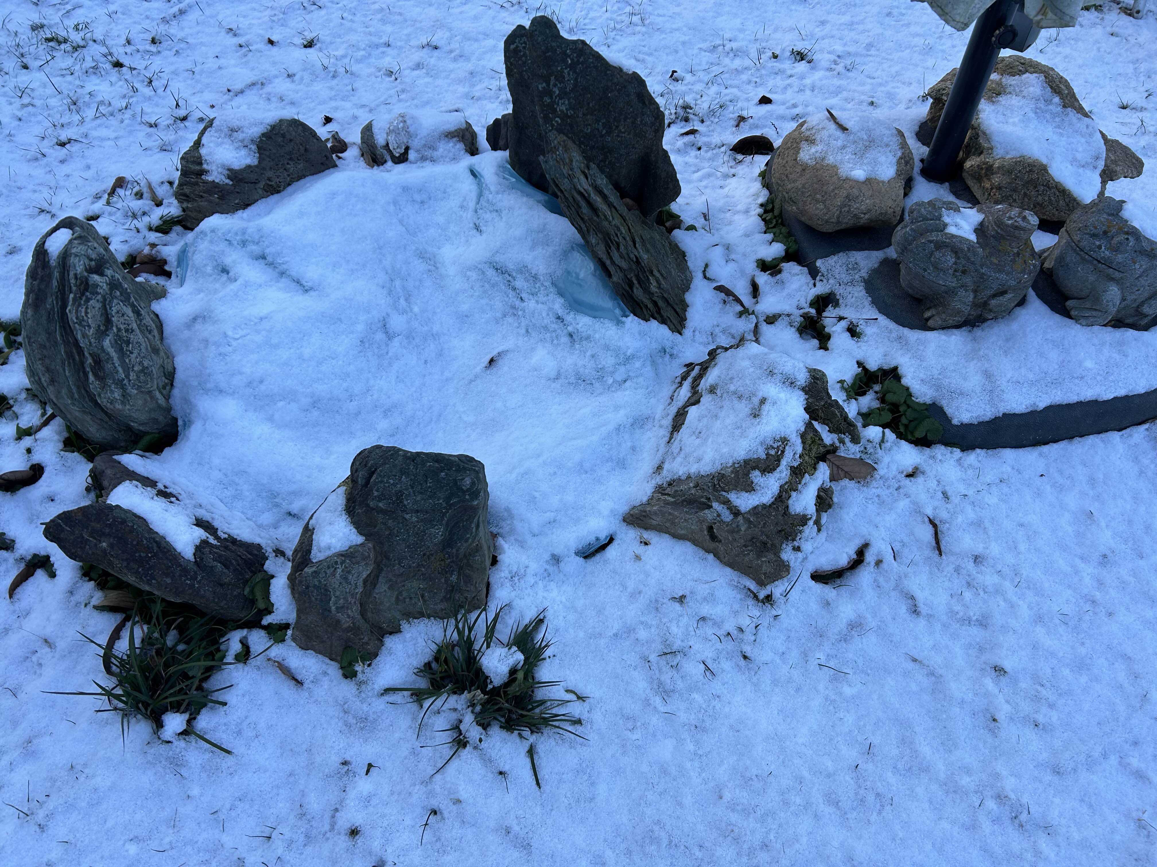 낮 햇살에 녹아 얼음이 둥둥 뜨면 건져내줘야 한다.