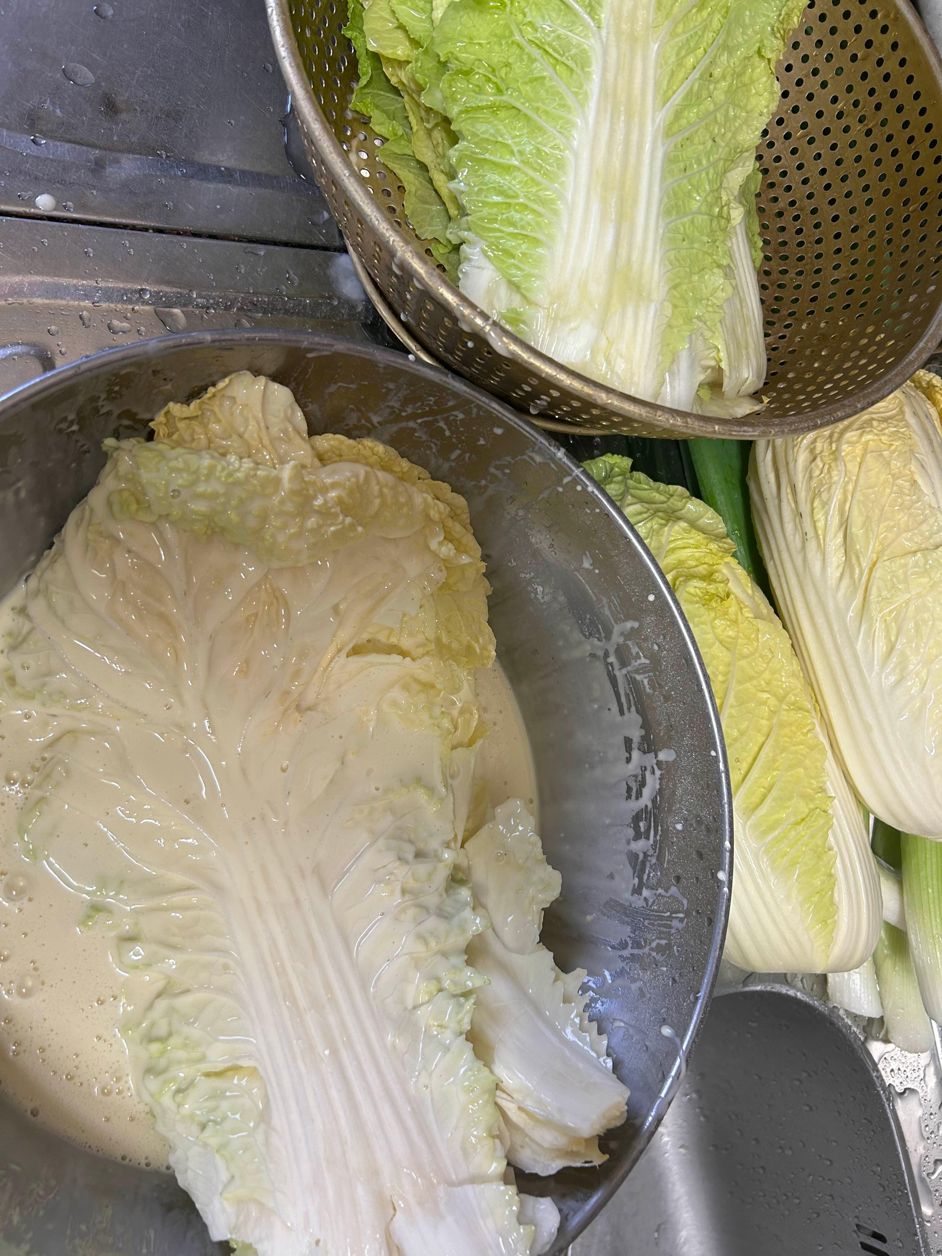 어제 오신 손님이 배추 씻어 건져주고 가셨는데 양념 버무리는 것까지 해주고 가겠노라고 하는 걸 나무꾼이 한사코 거절했단다.