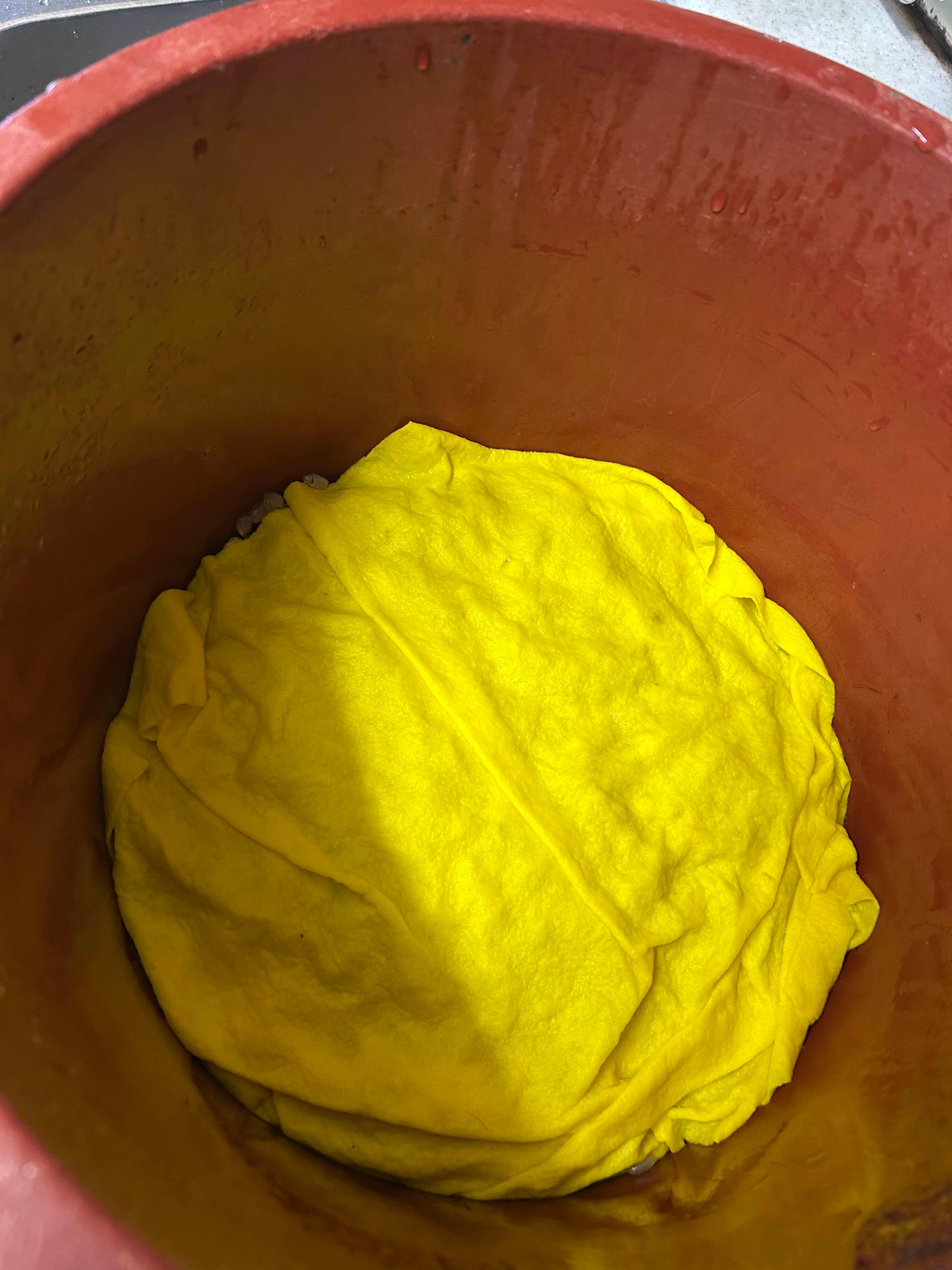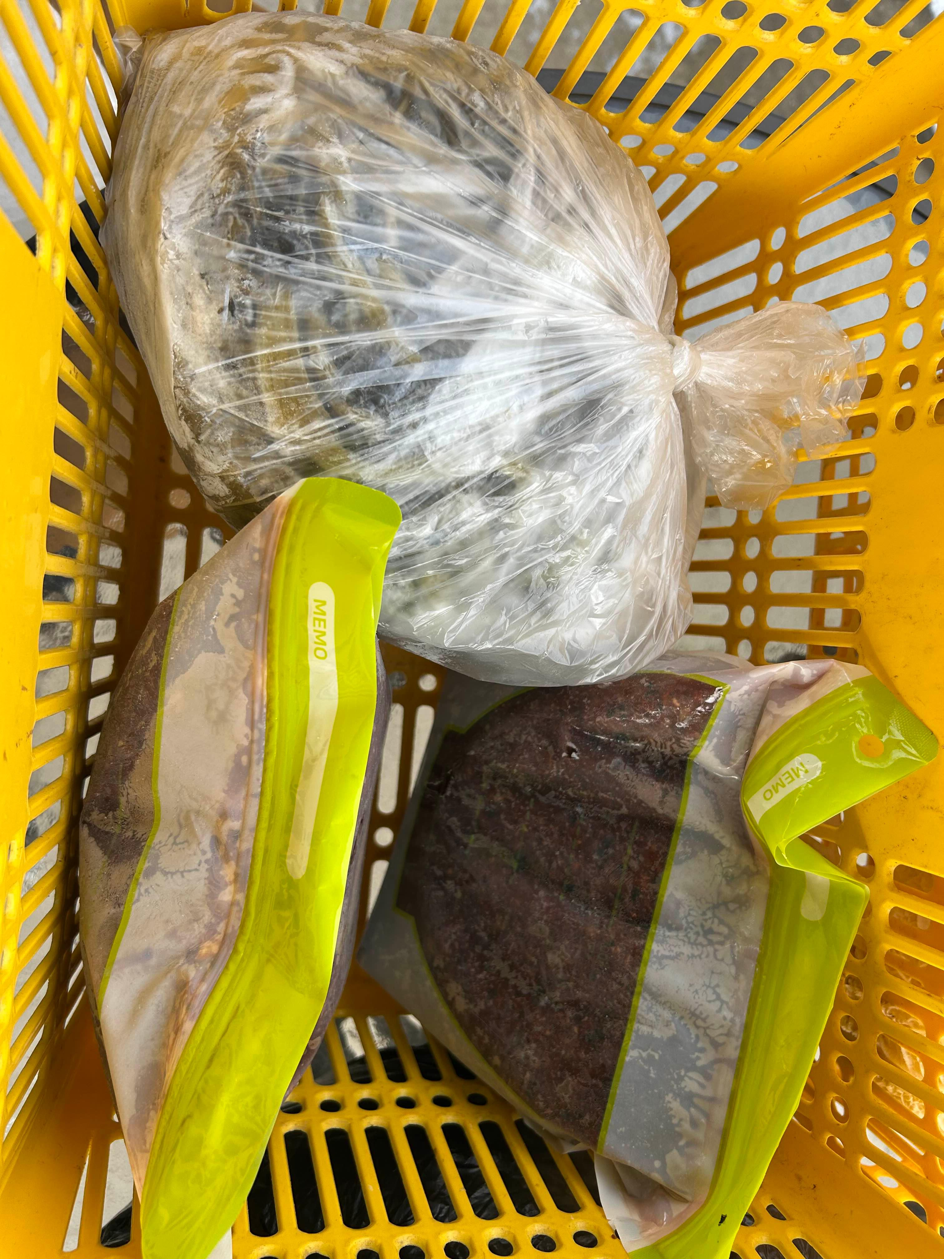 무시래기 삶은거 한 봉다리 작년김장양념 두 봉다리 알배추 네 포기 다듬어 넣고