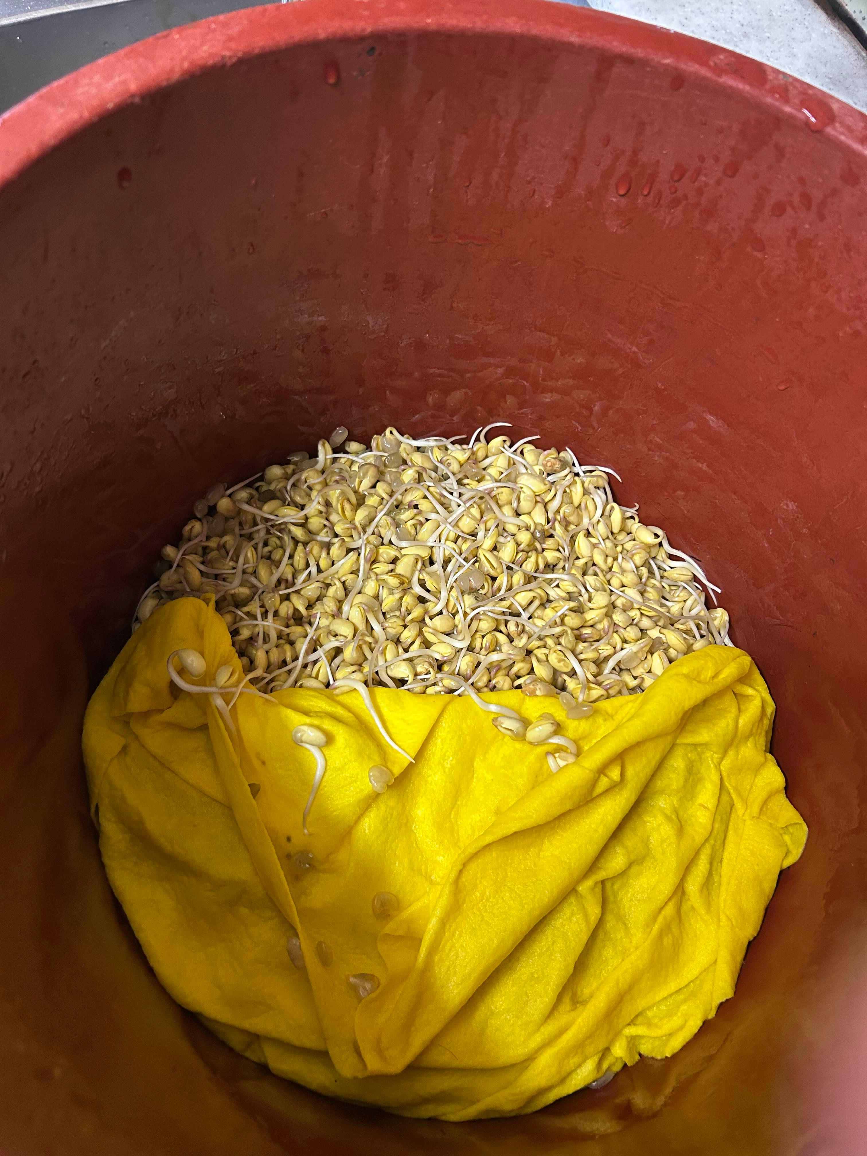 아까 낮에 콩나물을 담아 실어보내고 다시 한 시루 앉혀놨다.