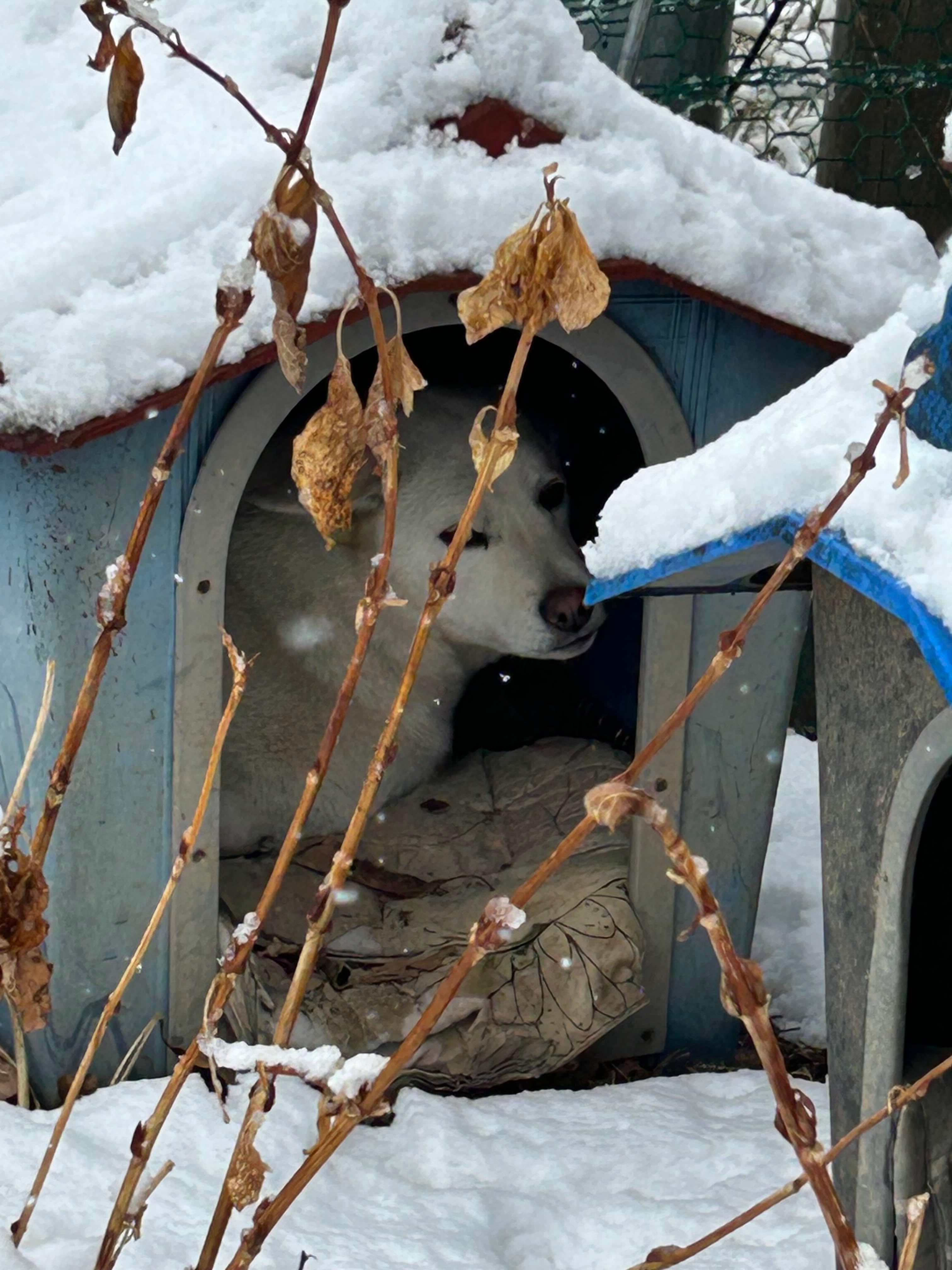 그러는 놈이 꼭꼭 눈만 내리면 개집에 들어가서 하루죙일 안 나온다. 뭔 이유인지는 모른다. 사진찍어 아이들에게 보내주면 웃겨죽는다고 난리다. 쟤 왜 저러냐고…